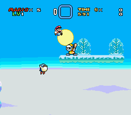 The first one has many baseball players from Super Mario World 2: Yoshi's Island and it features a sunset.
